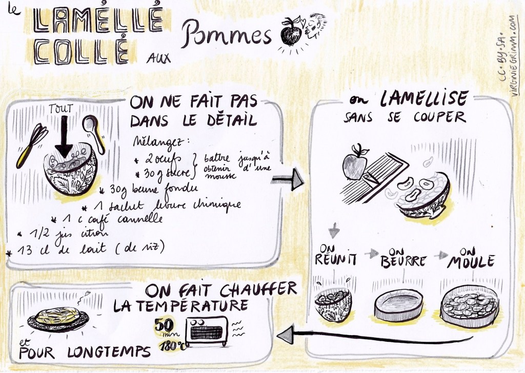 Recette dessinée pour qui a des pommes et aime les gâteaux. Idéal pour les petits et grands. Sans piège et très bon.