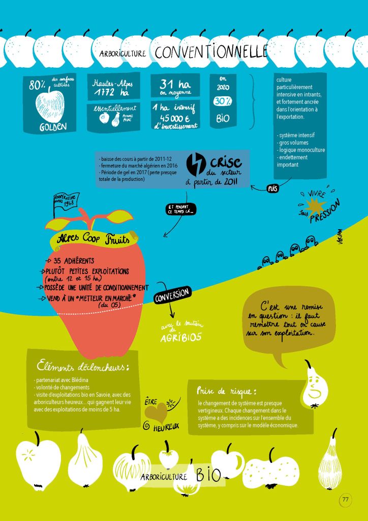 Ces questions nous ont entraînés dans une aventure collective de cinq années, entre actions de terrain, accompagnement de dynamiques collectives et co-production de connaissances. Un dialogue en continu entre monde paysan, société civile et monde de la recherche, sur un territoire, qui nous a conduit jusqu’à la transition agroécologique. En 5 ans, le paysage agricole et alimentaire du territoire des Hautes-Alpes s’est considérablement modifié, avec l’essor inattendu de l’agriculture biologique, le déploiement de structures collectives valorisant l’équité et la transparence comme Echanges paysans ou Biolait, l’expérience de cantines exemplaires en matière de transition…